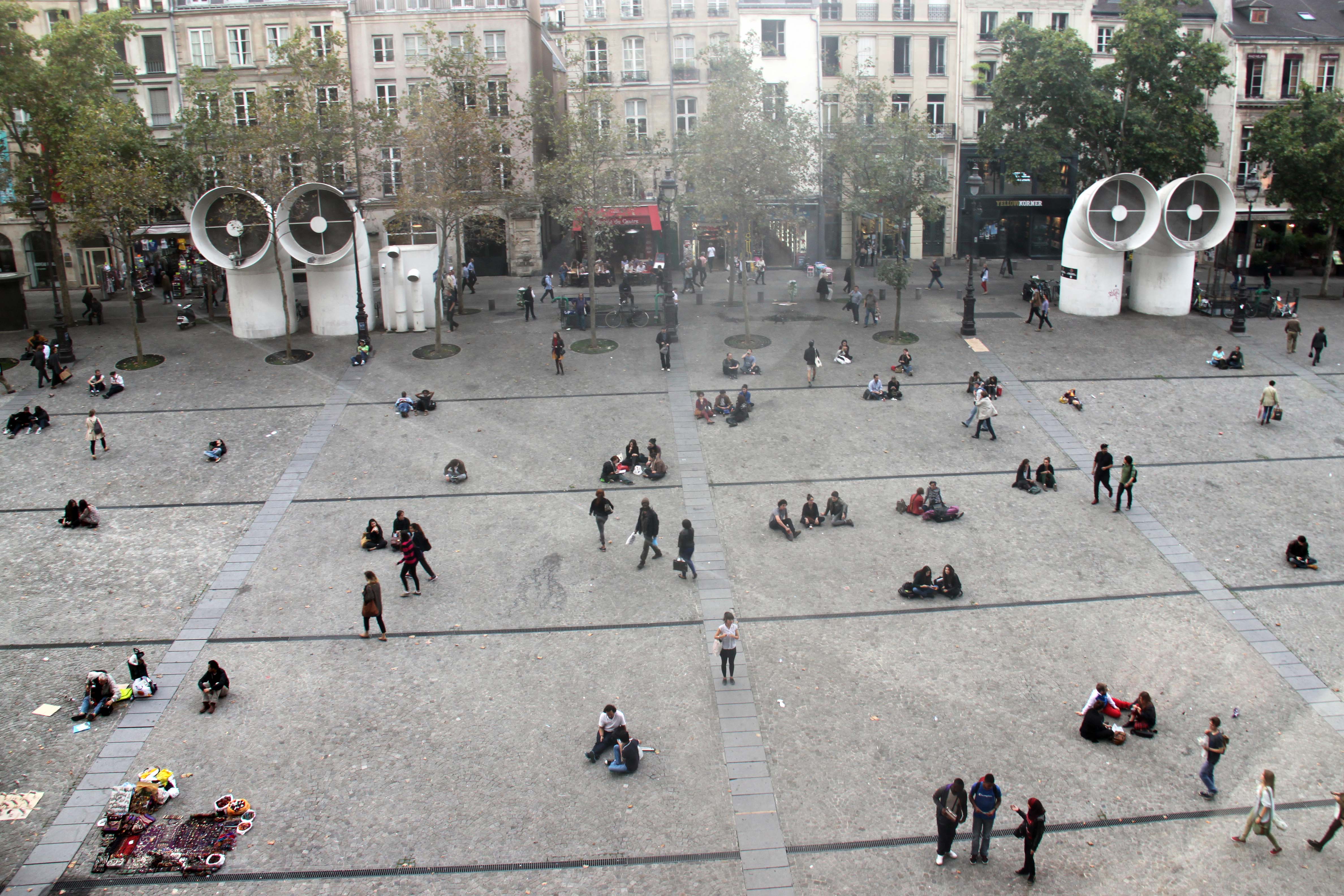 روبروی این ساختمان جورج پومپیدو که وسط بافت قدیمی هم هست تعداد زیادی از توریستها و و و ...که از بازدید بنا ها و اینا خسته شدن میرسن به این بنای مدرن که هم حال و هوایی عوض کنن بعداز اون همه بناهای پوسیده .