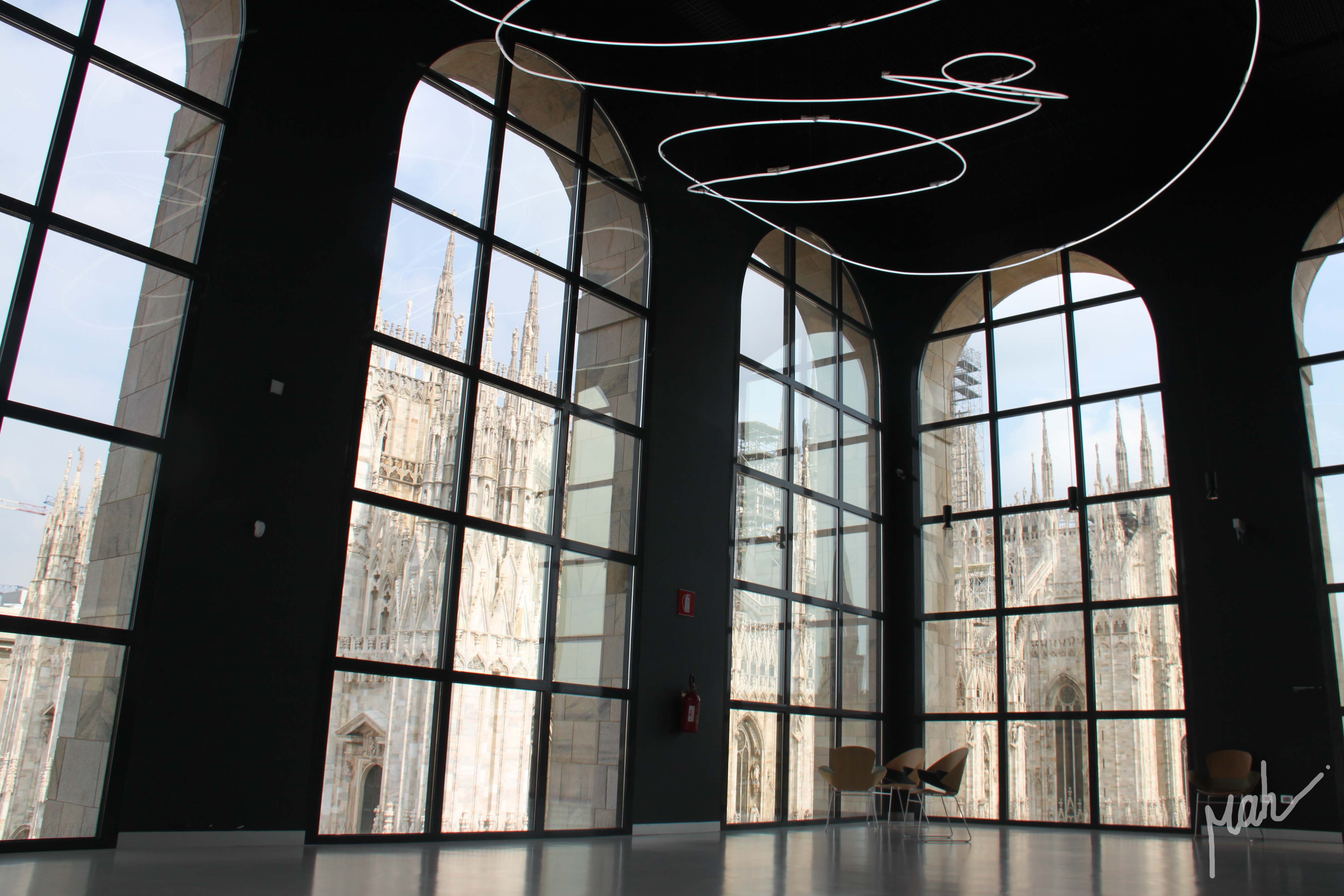 و در انتها، طبقه آخر ساختمان که دارای پنجره های رومی بزرگی میباشد مارا در مقابل میدان زیبای دومو و ساختمانهای مشهور آن قرار میدهد که این فضا،فضای رستوران و کافی شاپ موزه است.