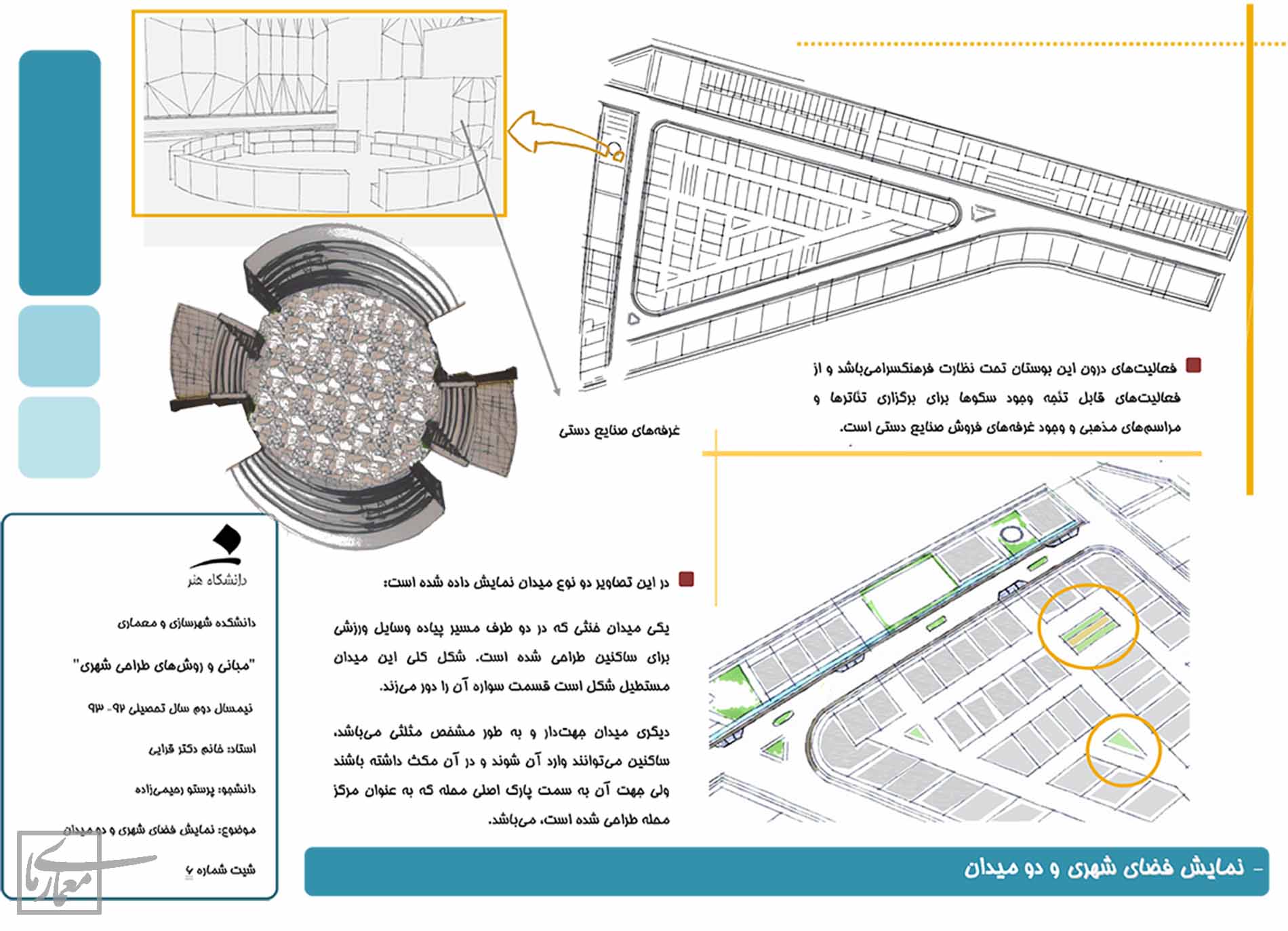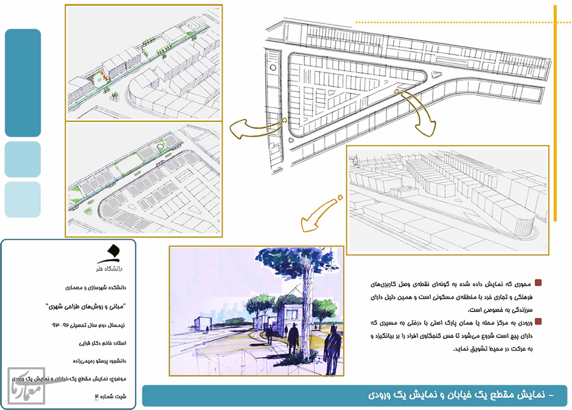 هدف این طراحی، طراحی محله ای است که ساکنینش به آن تعلق خاطر داشته باشند و می توان این امر را با طراحی نشانه ها و تقویت حرکت پیاده ایجاد کرد. نزدیک محل زندگی خودم یک فرهنگسرای فعال و بوستان های کوچک و حتی پارک بزرگی که در سطح شهر عمل کنه وجود داره و خواستم تا در این محله افراد دیگر تجربه ی مشابه من رو داشته باشند. در شمال شرقی محله دانشگاه هنر و شمال غرب آن دانشگاه آزاد وجود داره که شاید بتونه وجود کتابخانه را توجیه کنه، حتی تجاری های رو به خیابان اصلی بیش تر کتاب و لوازم تحریر خواهند فروخت و تجاری های داخل محله نیازهای روزانه ی ساکنین رو بر طرف می کنند.
