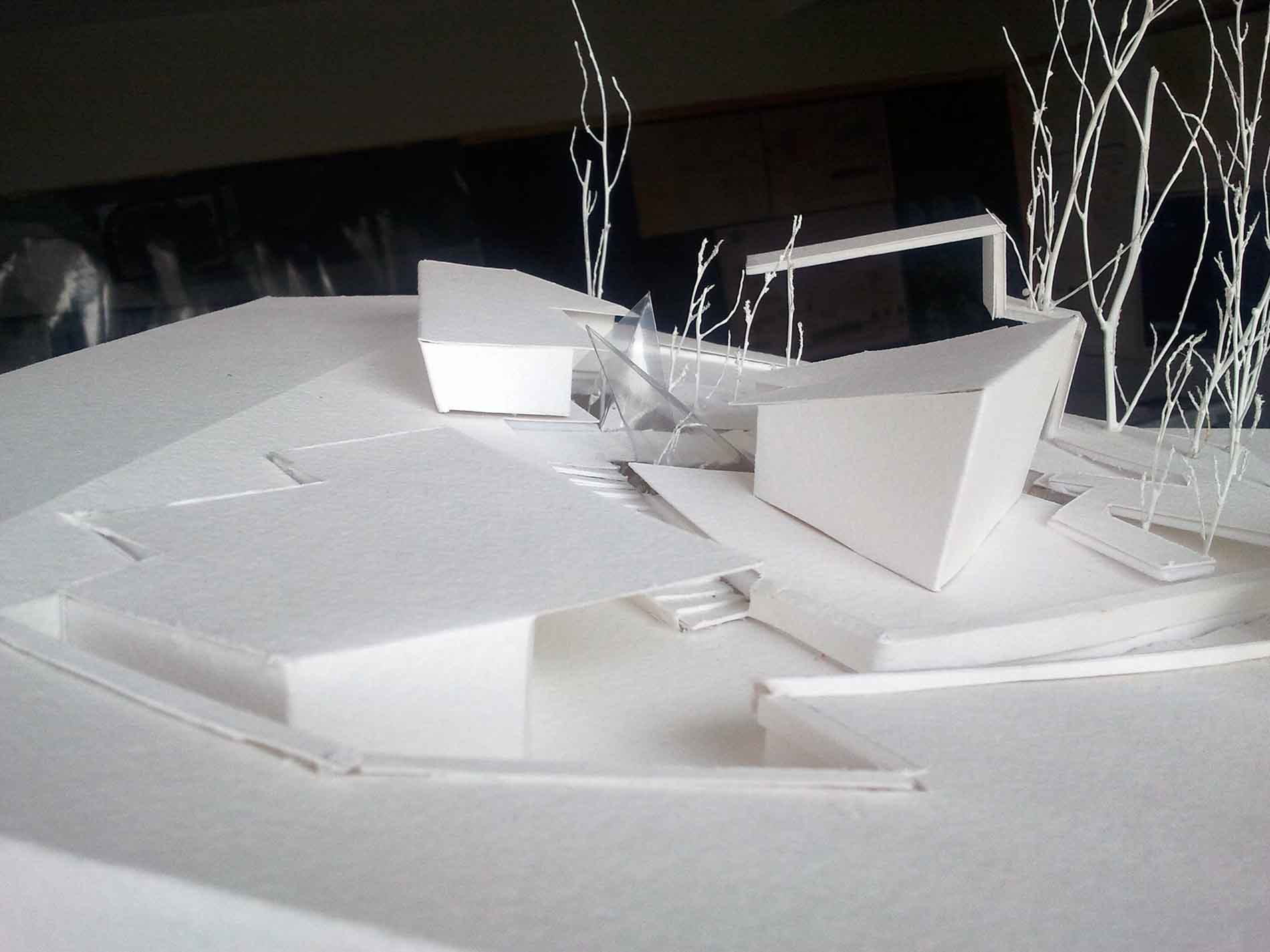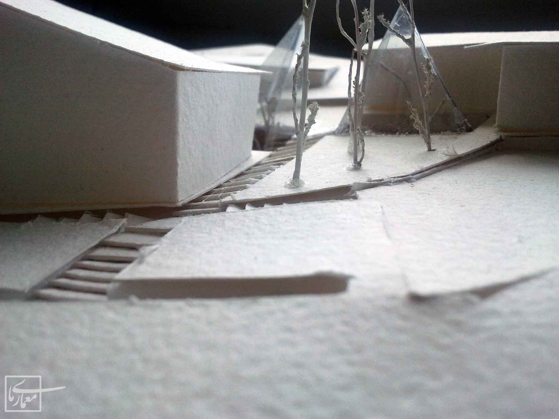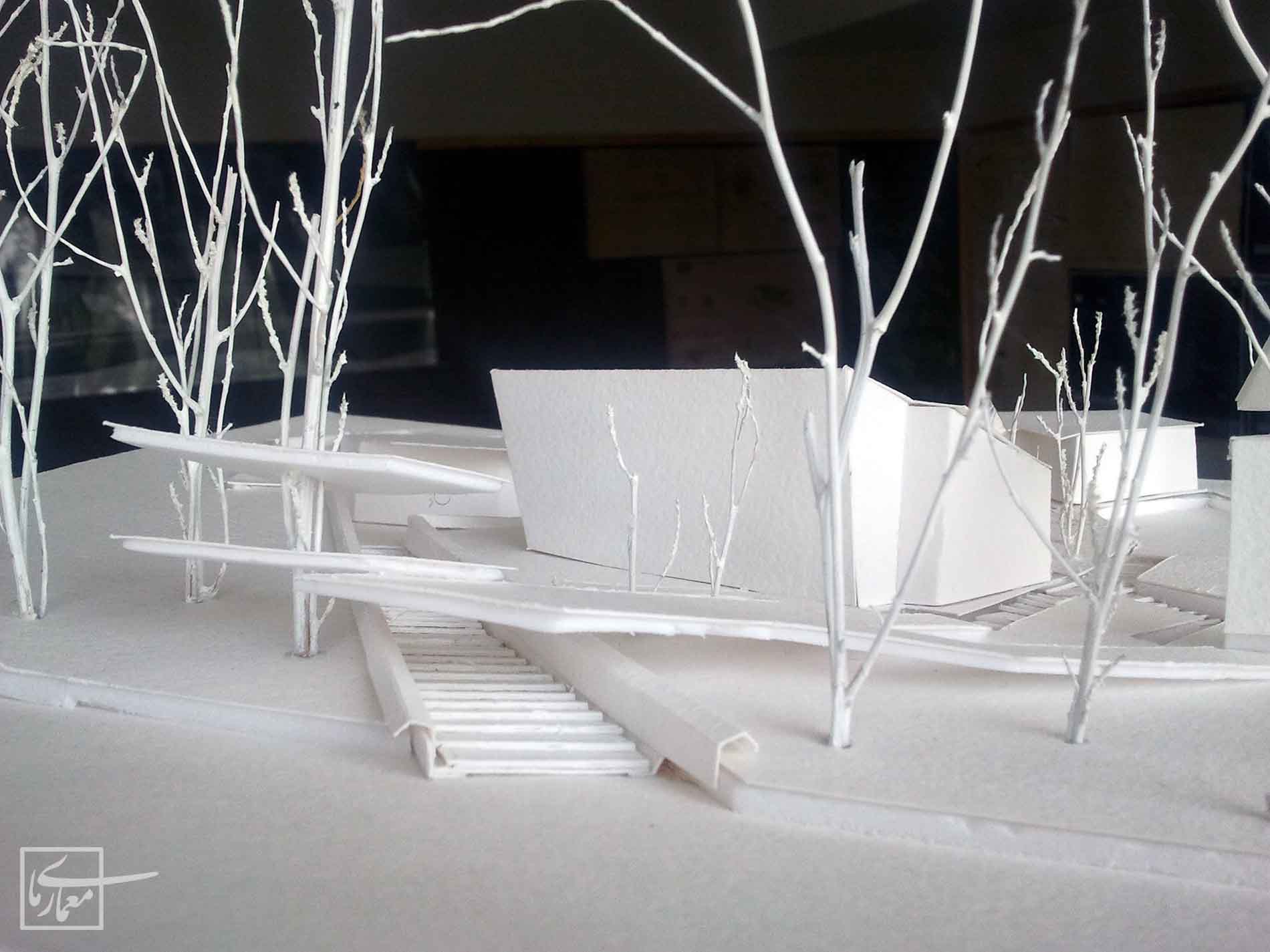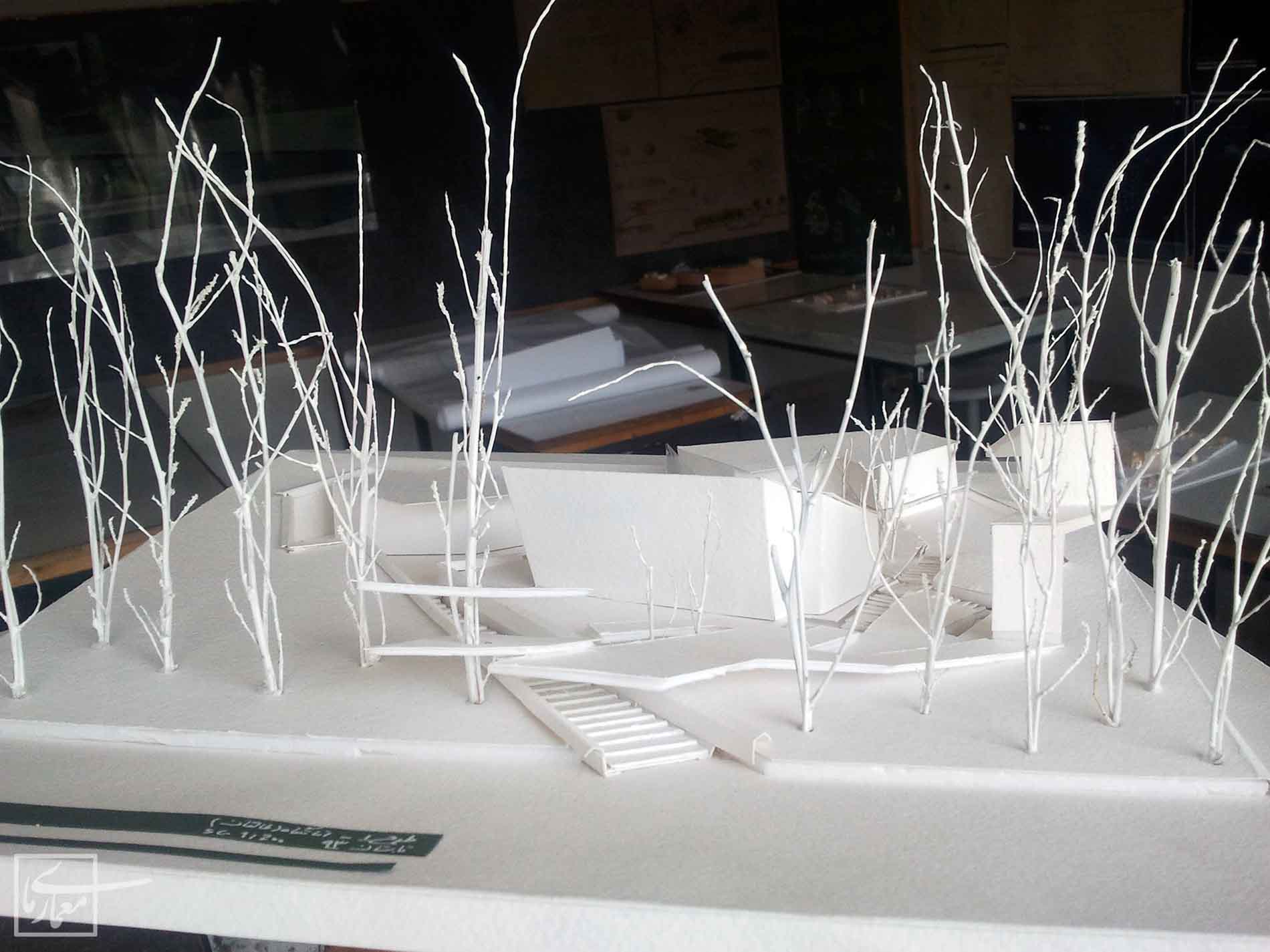 اما.. ترکیبی که با سایت و درختا اتفاق افتاده در ماکت، نظر آدمو جلب میکنه که جالبه..پله های ورودی ..فرم ها که با منطقه و حس و حال فضای کوهستانی هماهنگن هم از نکات مثبت کار محسوب میشه.