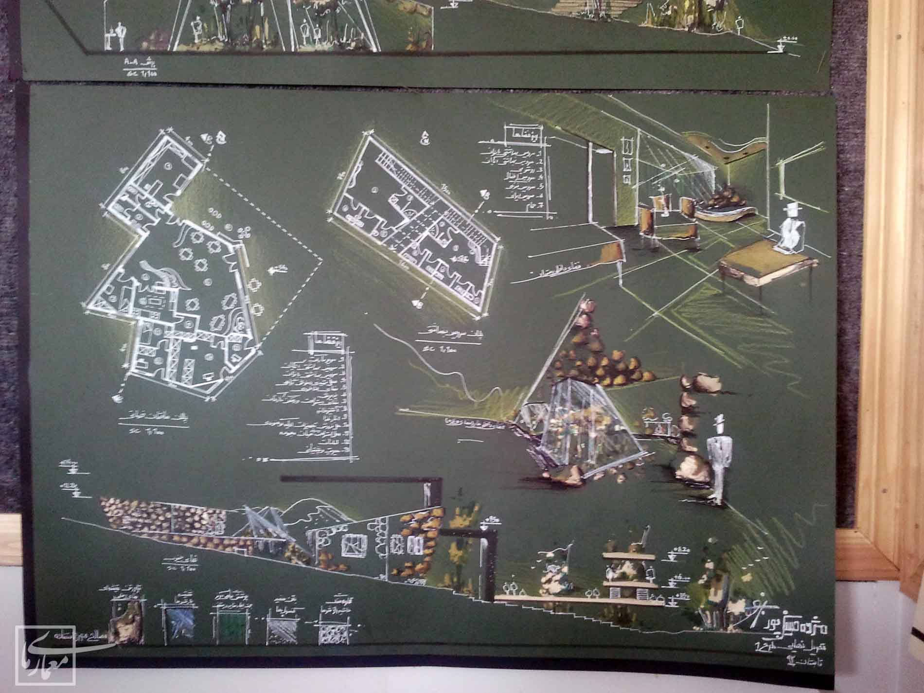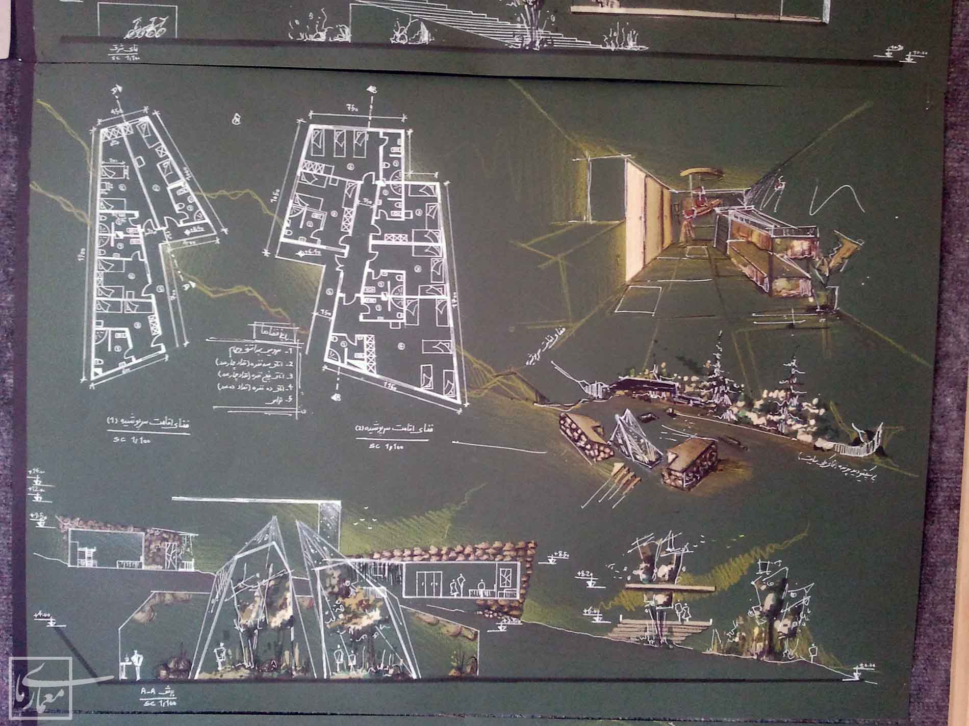 خسته نباشید. کارتون خیلی خوبه حس و حال فضا به منطقه کوهستانی میخوره و خشنه که به نظرم با درخت تضاد خوبی ایجاد کرده صفحاتی که تو ماکت هست (که منم مثل خانم نجفی متوجه کاربردشون نمیشم) به نظرم خلوص فضا رو کم کرده در مورد شیت بندی و اسکیس کار واقعا خوب و عالی کار شده دستتون درد نکنه ولی درک حجم از شیت ها مشکله جدی تر شدن نقشه ها و جزییات و جدی تر شدن سازه هم به نظرم موردی هست که باید توجه بشه. در کل خیلی خوبه. ماکتتون هم به نظرم به لحاظ حرفه ای خیلی خوبه (ساده-گویا-بدون جزییات اضافه)