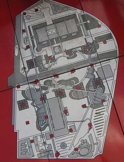 درجای جای فضای پارک عناصر قرمز رنگی دیده میشود که در پایین توضیح بیشتر داده میشود.