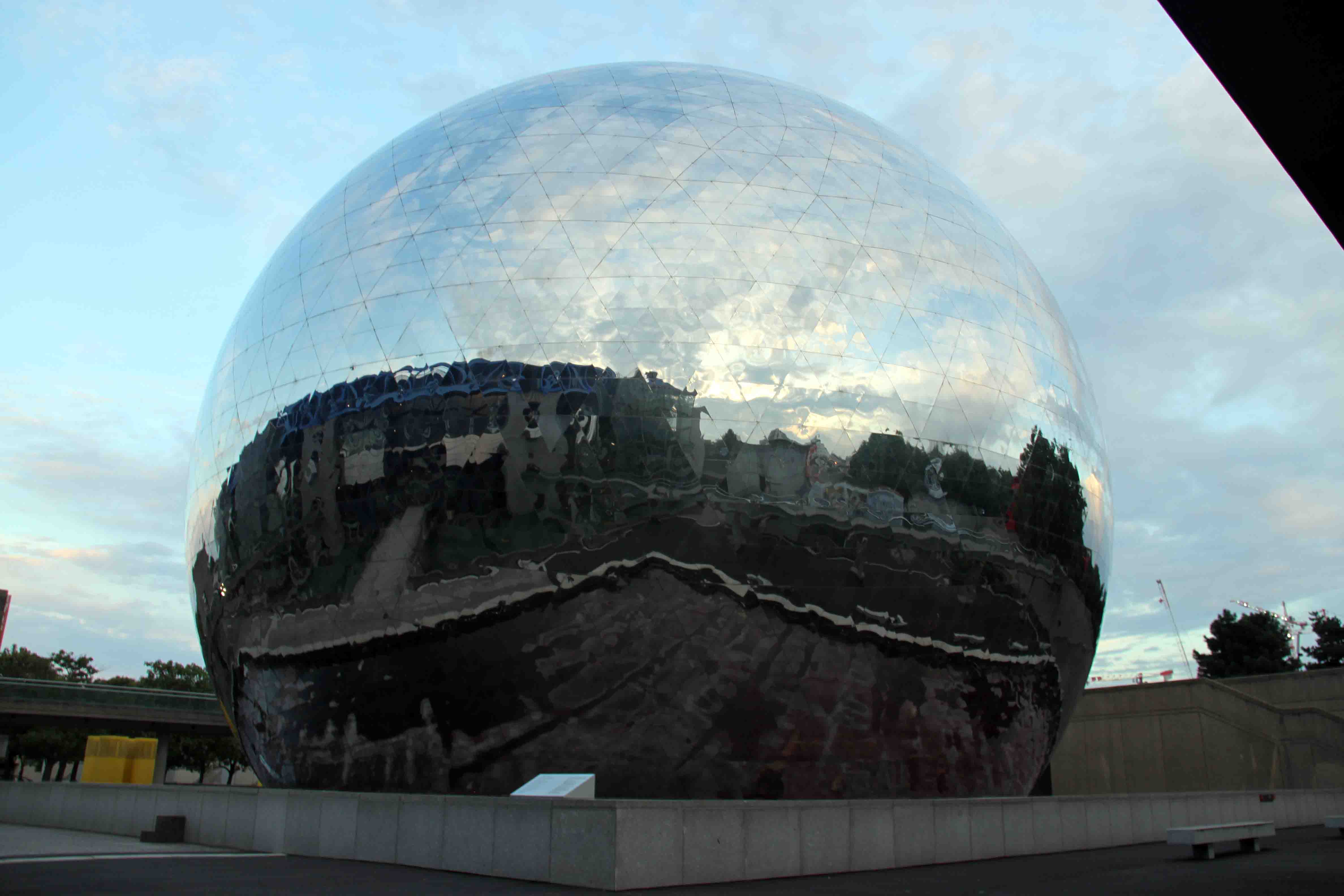 این کره ی آینه ای نمای خارجی سینمای سه بعدی مجموعه است.(geode)