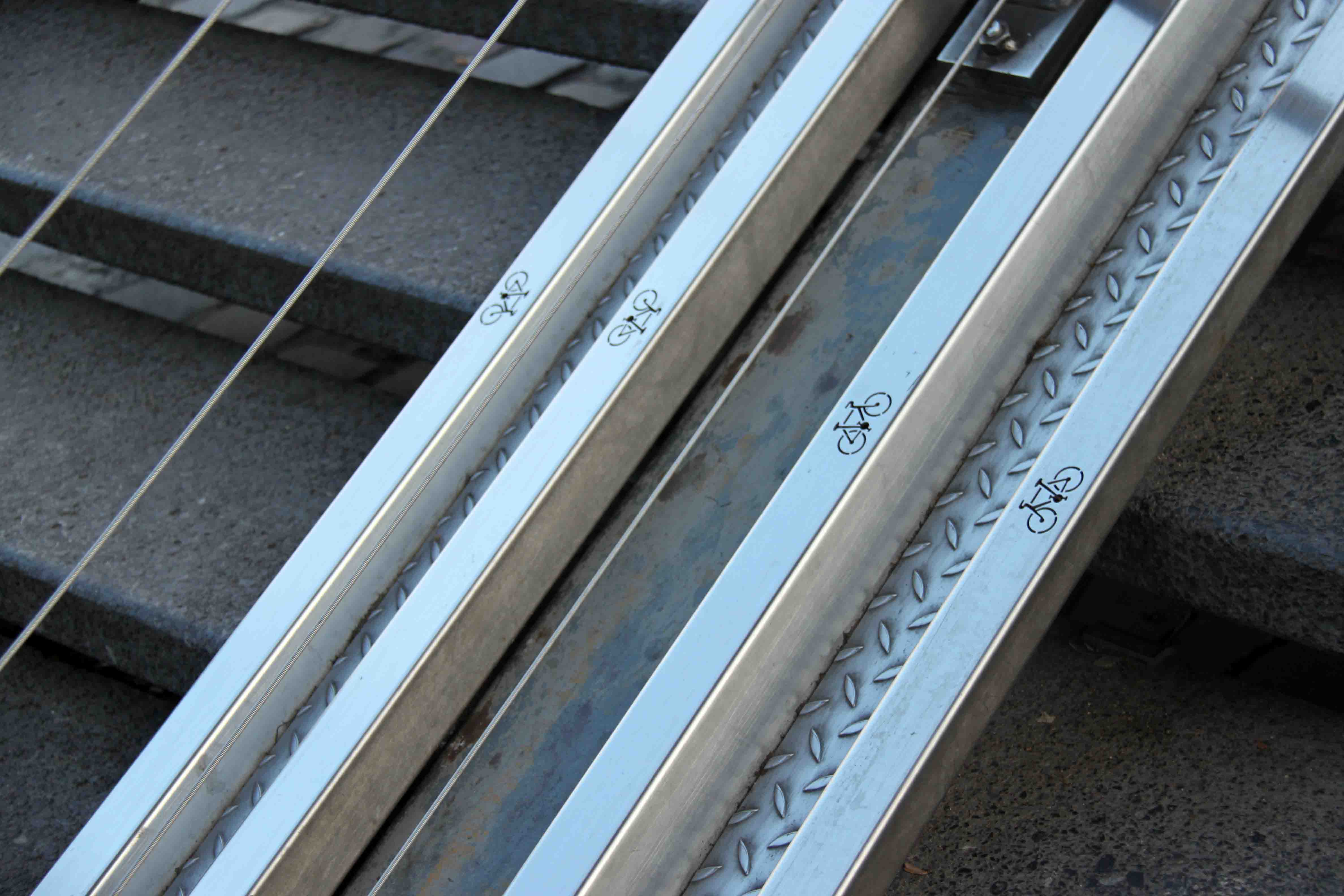 قرار دادن ریلی مخصوص در حاشیه پله برای راحتی عبور دوچرخه از روی پل پارک: